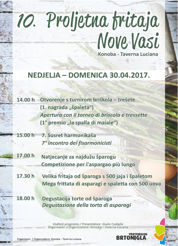 Sa zadovoljstvom Vas obavještavamo da će se ove nedjelje, 30. travnja 2017. godine održati tradicionalna gastro manifestacija: 10. Proljetna fritaja Nove Vasi, posvećena proljetnoj deliciji divljoj šparogi.