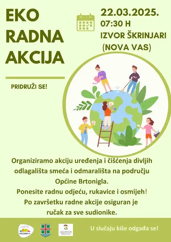 Organizatori ove akcije su članovi Društva gljivara „Boletus“, Turistička zajednica Općine Brtonigla i Općina Brtonigla. Akcija će obuhvatiti čišćenje prirodnih izvora vode Škarline, uklanjanje raznog smeća i drugih vrsta otpada koji se zateknu na terenu, čišćenje grmlja te uređenje samih lokacija na područje Općine.