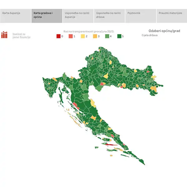 Institut za javne financije (IJF) objavio je rezultate najnovijeg ciklusa istraživanja transparentnosti proračuna županija, gradova i općina. U obzir su uzeti dokumenti koji su na mrežnim stranicama regionalnih/lokalnih jedinica bili dostupni u razdoblju 1. studenoga 2022. – 18. travnja 2023. i to na dan pretraživanja. Takvim izračunom razina proračunske transparentnosti može iznositi od 0 do 5.