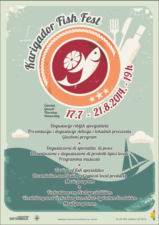 U želji da se gostima i posjetiteljima malog ribarskog naselja Karigador te široj publici predstavi i 'plava', morska strana Brtonigle, sa zadovoljstvom Vas obaviještavamo o ovogodišnjem novitetu, manifestaciji na obalnom dijelu općine - Karigador Fish Festu.