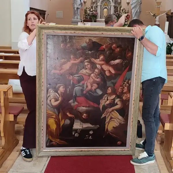 Dopo il restauro del prezioso dipinto a olio su tela delle dimensioni di 135 x 100 cm, risalente all’ultimo quarto del XVII secolo, l’opera è stata ricollocata sull’altare destro.